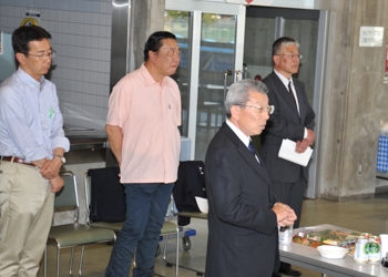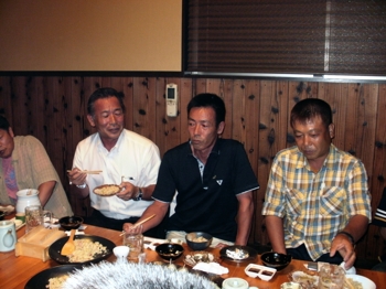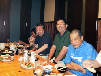 森山支部長(写真中央)の挨拶、引き続き神谷学友会会長(森山支部長の右)が学友会の現状及び学友会の活動を報告されました。今回初めて岡山県北部での開催となりましたが、懇親会は始終和やかな雰囲気で行われ、予定を延長し10時閉会となりました
