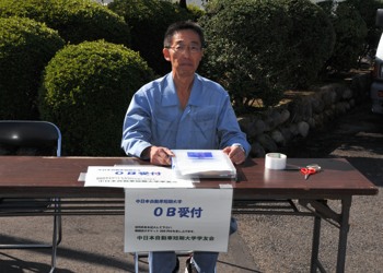 10月26(土)・27日(日)に開催された第47回「自短祭」へのご来場、ありがとうございました。 総合受付では、本学OB職員が、OBの皆さまに模擬店チケット(500円分)を無料配布いたしました。開催日前日が雨模様で心配されましたが、当日は好転に恵まれ無事に開催することができました。今年度も多くの来場者をお迎えし、OBの受付は総勢80名になりました。 受付にてご協力頂いた先生方、ありがとうございました。 また来年も実施しますので、是非ご来場ください。