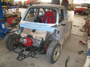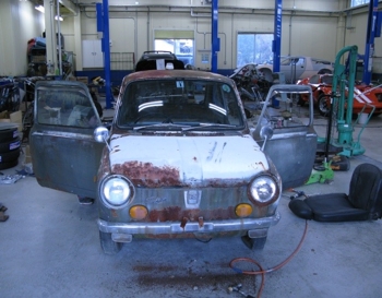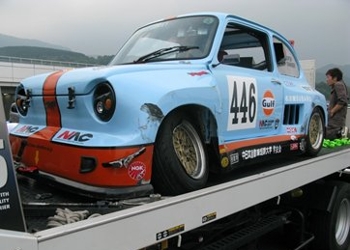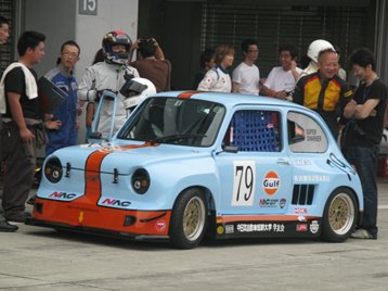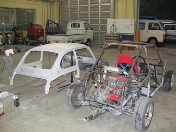 車体専攻科で製作した「スバルR-2レーシングカー」で、富士スピードウエイで行われるK4-GP(8月13日開催:2001年から始まった軽自動車による耐久レース)に中日本自動車短期大学として参戦予定です。