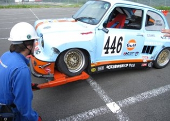 レースと言うものはそれほど甘いものではないと頭では分かっていたのですが、現実のものになると残念でなりません。しかし、参加してくれた学生諸君には、OBと一緒になって闘い、いろいろなことを教えてもらい、とても良い経験になったと思います。車は破損してしまいましたが、本学は車を直すことも教える学校です。これも一つの試練と思い「七転び八起き」、また修復して表舞台に出たいと考えています。